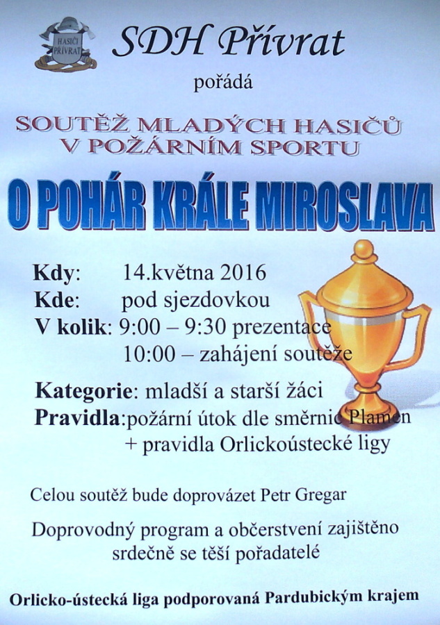VI. ročník soutěže mladých hasičů O pohár krále Miroslava