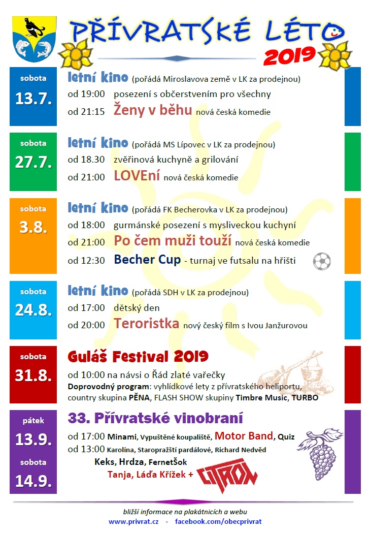Přívratské léto 2019.jpgJako každým rokem, i letos pořádá obec ve spolupráci se spolky letní kulturu.