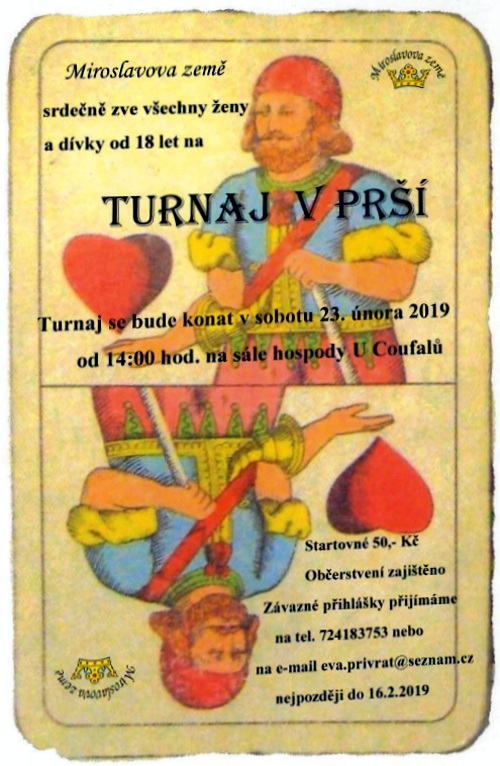 Turnaj se bude konat v sobotu 23. února 2019 od 14:00 hod. na sále hospody U Coufalů